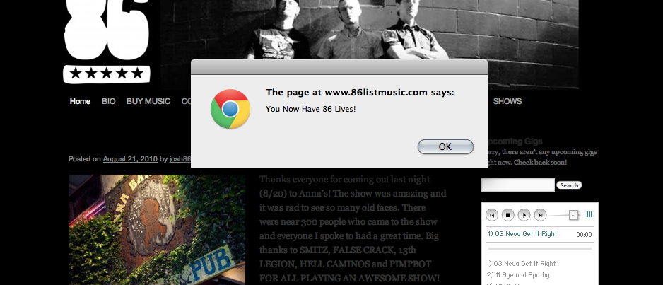 The 86 List from Honolulu Hawaii is one of the best Punk Bands to ever come out of Hawaii.  A three piece lead by front Man Josh 86 created in October of 1999.  This seemingly simple website was created to show case the rising band.  Showing it’s Gig schedule, press kit, discography and even samples of their music.