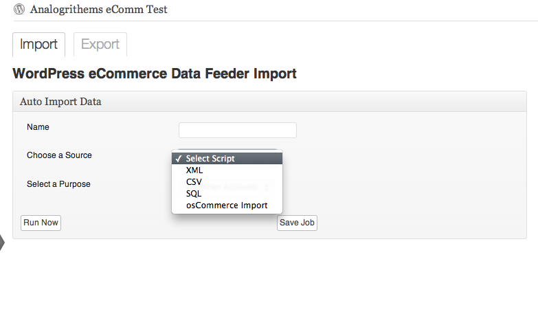 If you’ve installed and activated the osCommerce Migrate plugin then when you go to the eCommerce Feeder you’ll have a new Source called osCommerce import.
