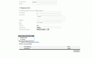One of the great things about authorize.net is you have the choice of using credit cards or eChecks. As you can see below, if you choose eCheck instead of Credit Card, you will then be given the echeck input form.