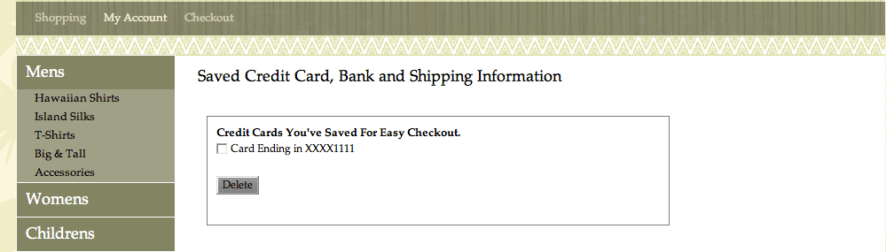 Now if the user decides they no longer want to have their personal information stored by us (On Authorize.Net’s Servers) or if a card is old and they want it removed from the list, they will now have a new link under their My Account page where they can do that as well.